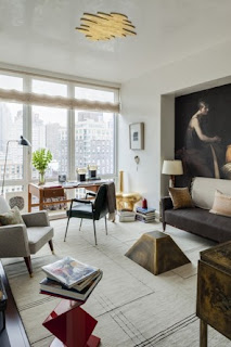 Alexa Hampton's bedroom was a knockout! For a traditionalist, she really balanced the contemporary space with aplomb. She hid a pole with a coromandel screen and swathed the room in fabric. The lacquered walls in Benjamin Moore's Dragon's Breath really set off the view. Stunning!